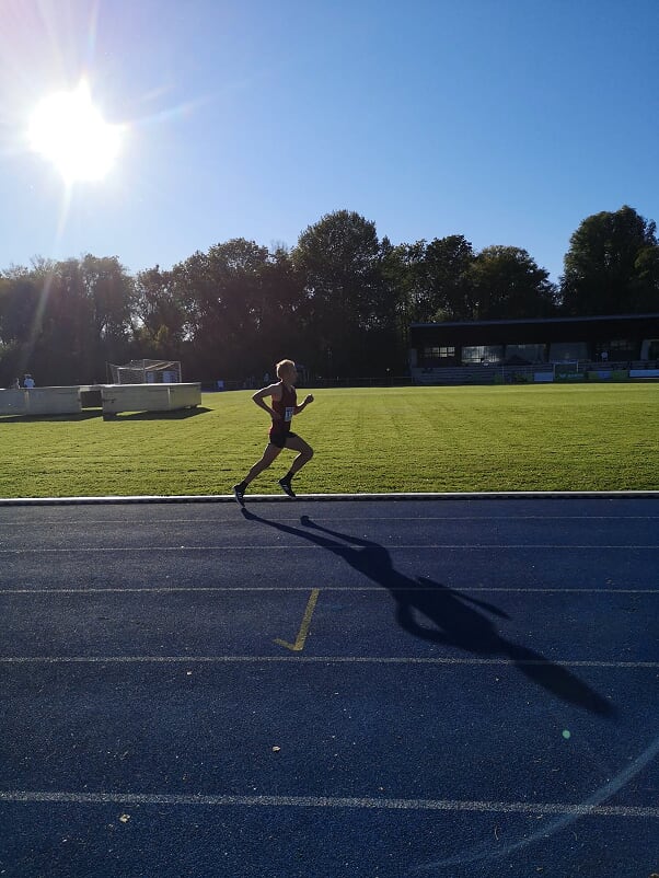 Sonntags hatten die Athleten mehr Glück mit dem Wetter. Flo Bremm war im gemischten Rennen der Männer und U23 über 5.000 m Start. Nach der Sommerpause befindet sich der 20-jähirge noch im Formaufbau. Das Rennen in seiner Altersklasse konnte er in 15:16,60 min gewinnen. Foto: Franziska Bremm