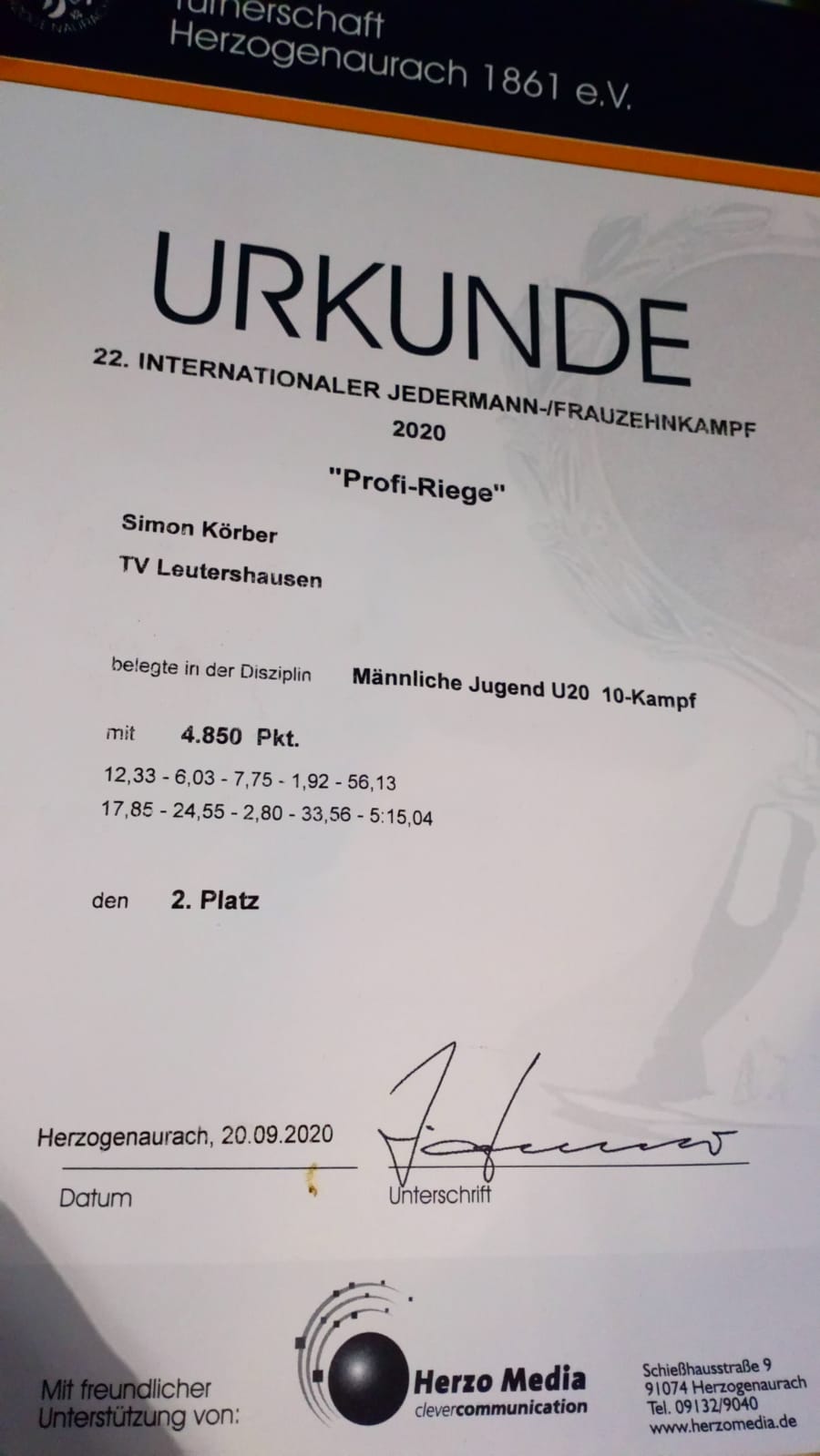 Insgesamt sammelte Simon 4.850 Punkte und landete auf Rang zwei in seiner Altersklasse.