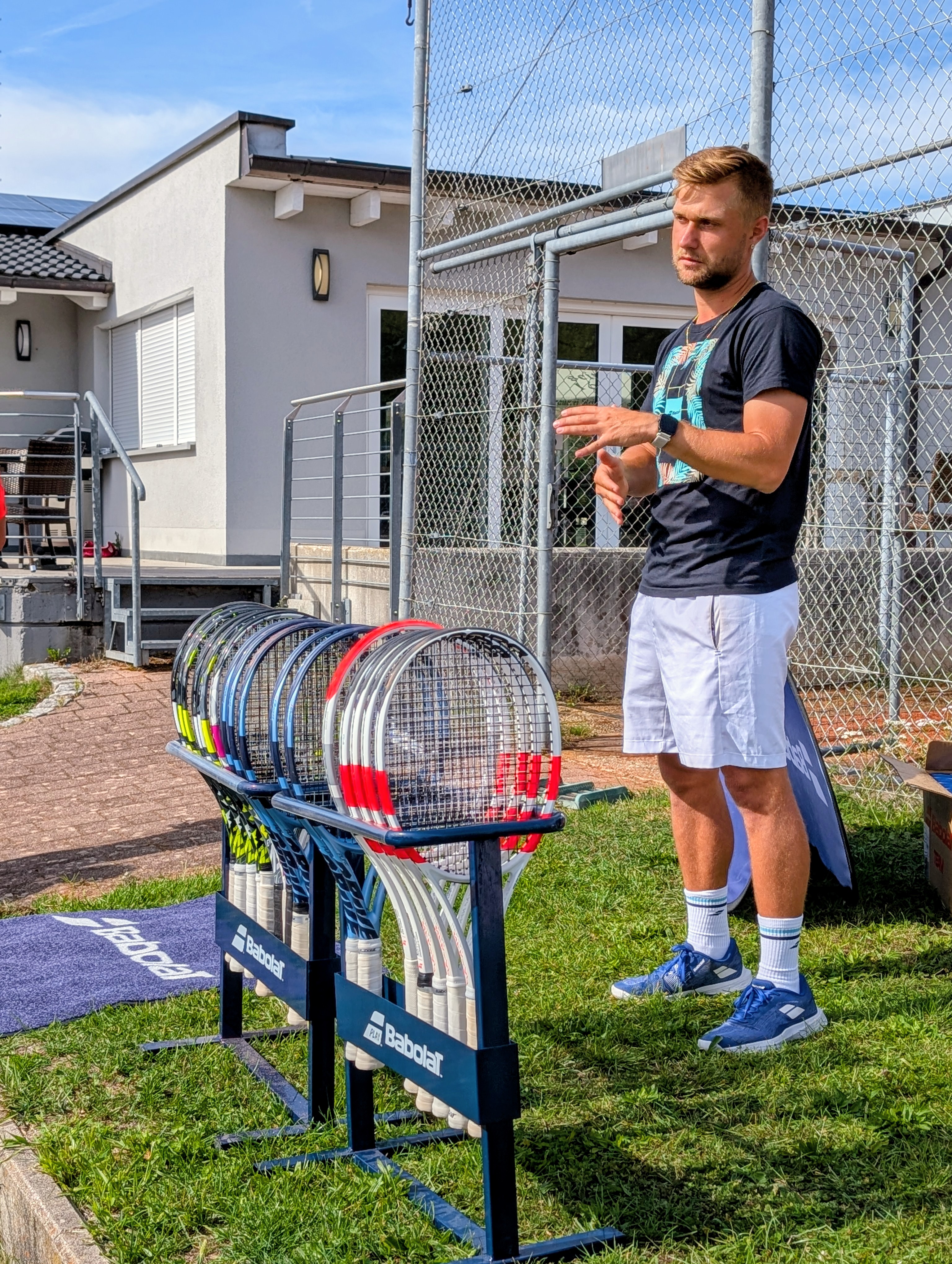 Domi ist Markenbotschafter für Babolat und brachte eine große Auswahl an Schlägern mit!